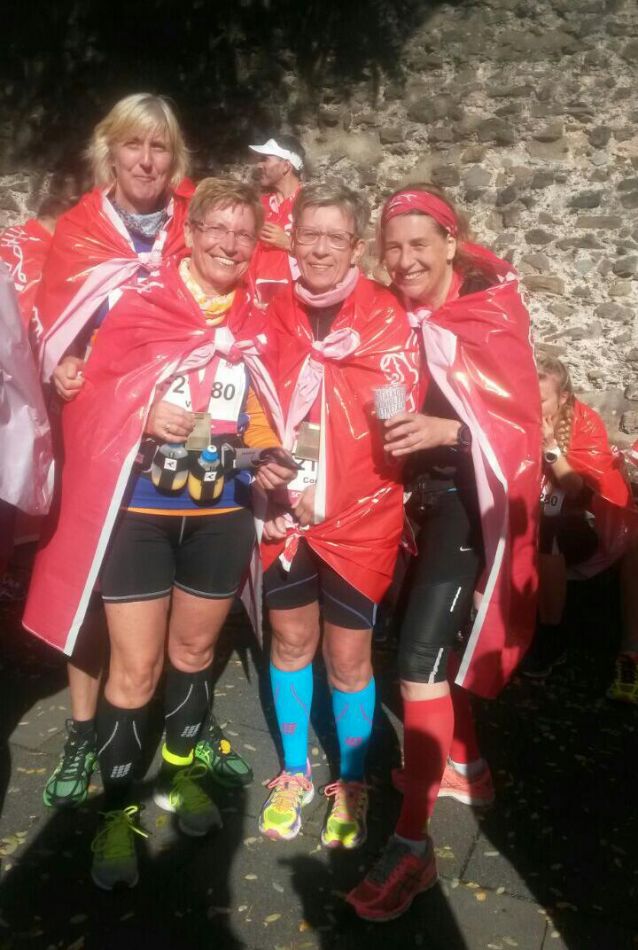 Am 30.9.17 machten sich 6 Frauen auf den Weg nach Köln, um am Sonntag, den 1.10. den Rheinenergie -Halbmarathon zu bewältigen. Nachdem es bei der Anfahrt und den ganzen Samstag ausgiebig geregnet hatte, empfing der Sonntag unsere Läufer mit strahlendem Sonnenschein und bestem Laufwetter. Bedingt durch das gute Wetter waren auch sehr viele gutgelaunte Zuschauer an der ganzen Strecke, die unsere Läufer in besten Zeiten ins Ziel getragen haben. Conny und Birgit hatten eine Zeit von 2:03 , Vera von 2:07, was in ihrer Altersklasse den 3. Platz brachte und Eleonore, leider auf dem letzten Drittel von schweren Krämpfen heimgesucht, kam trotzdem noch in 2:10 ins Ziel. Margard musste verletzungsbedingt verzichten und hat uns zusammen mit Gisela bestens betreut. Nach dem Lauf und am Montag bis zur Abfahrt des Zuges haben wir dann noch Köln erkundigt und dabei nochmal viele km zurückgelegt. Alles in allem waren es 3 schöne und erfolgreiche Tage.